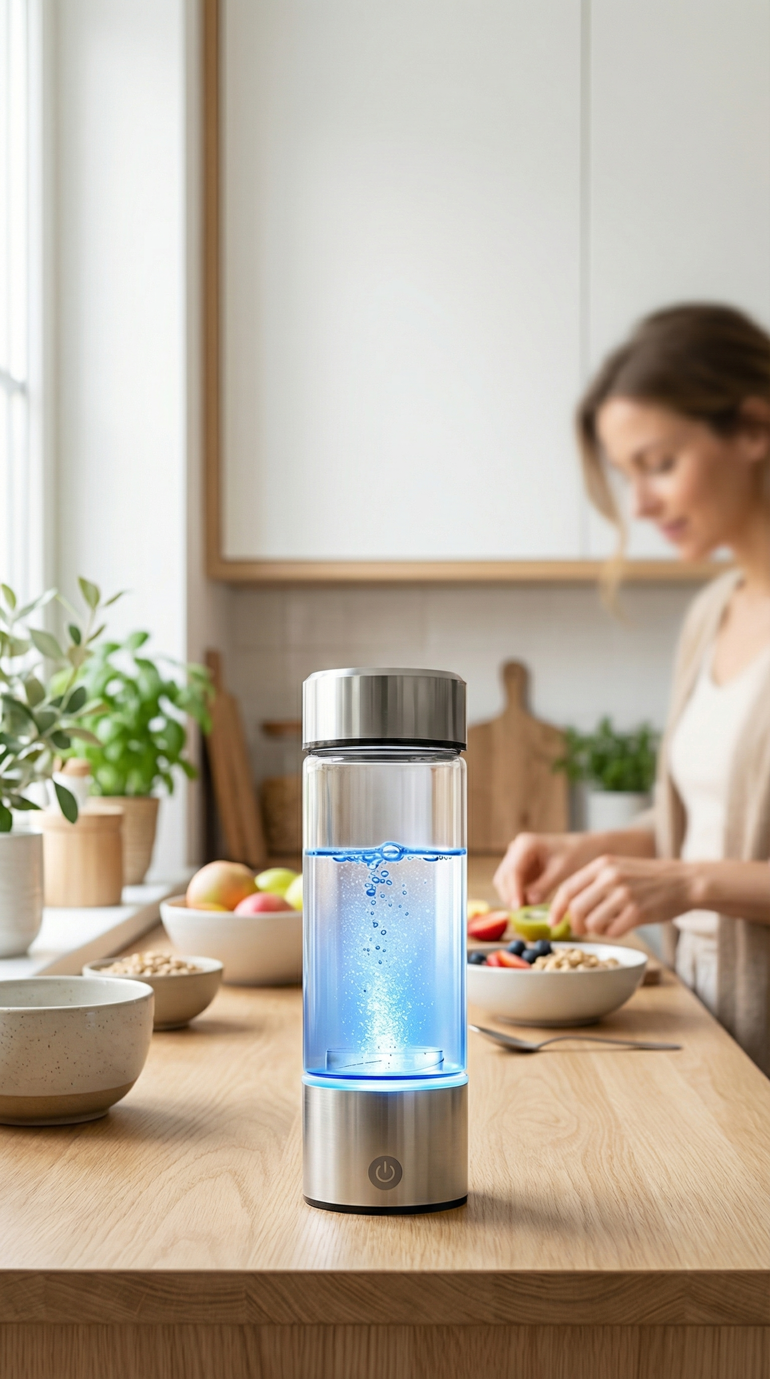 Butelka VitaWoda wytwarza wodę wodorową poprzez proces zwany elektrolizą. elektroliza to rozdzielenie wody na jej naturalne elementy (H₂, O).