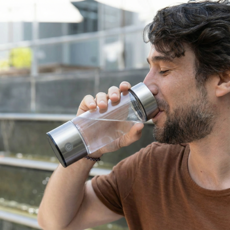 Dzięki technologii elektrolizy PEM, Butelka VitaWoda wzbogaca wodę wodorem molekularnym, wspierając wiele aspektów twojego zdrowia.